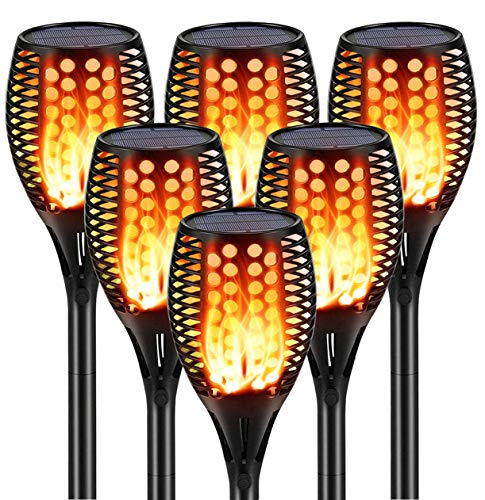 houzz Solar Torch Light 6 PCs Solar Torches Lights Set Upgraded Waterproof Landscape Garden Pathway Light with Vivid Dancing Flickering Flames Auto On/Off Dusk to Dawn for Garden Pathway Yard Decoration